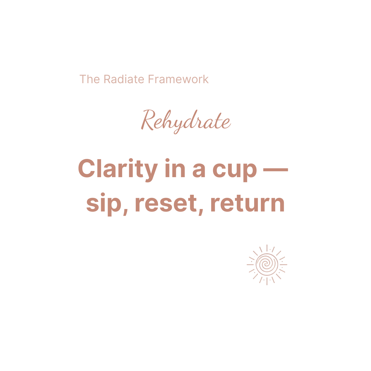 The Radiate Framework helps midlife professionals move from depletion and self-blame to steadiness and self-trust. Not with rigid plans or quick fixes — but through seven gentle pillars that restore rhythm to body, mind, and spirit.